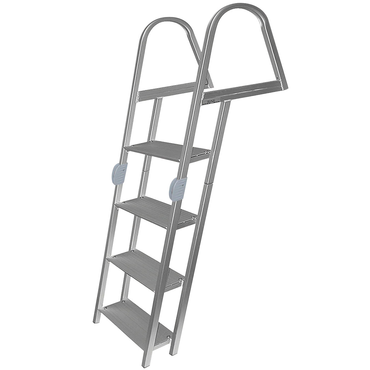 • These aluminum dock ladders conveniently flip up out of the water line when not in use, keeping steps dry and clean while extending the life of the ladder.