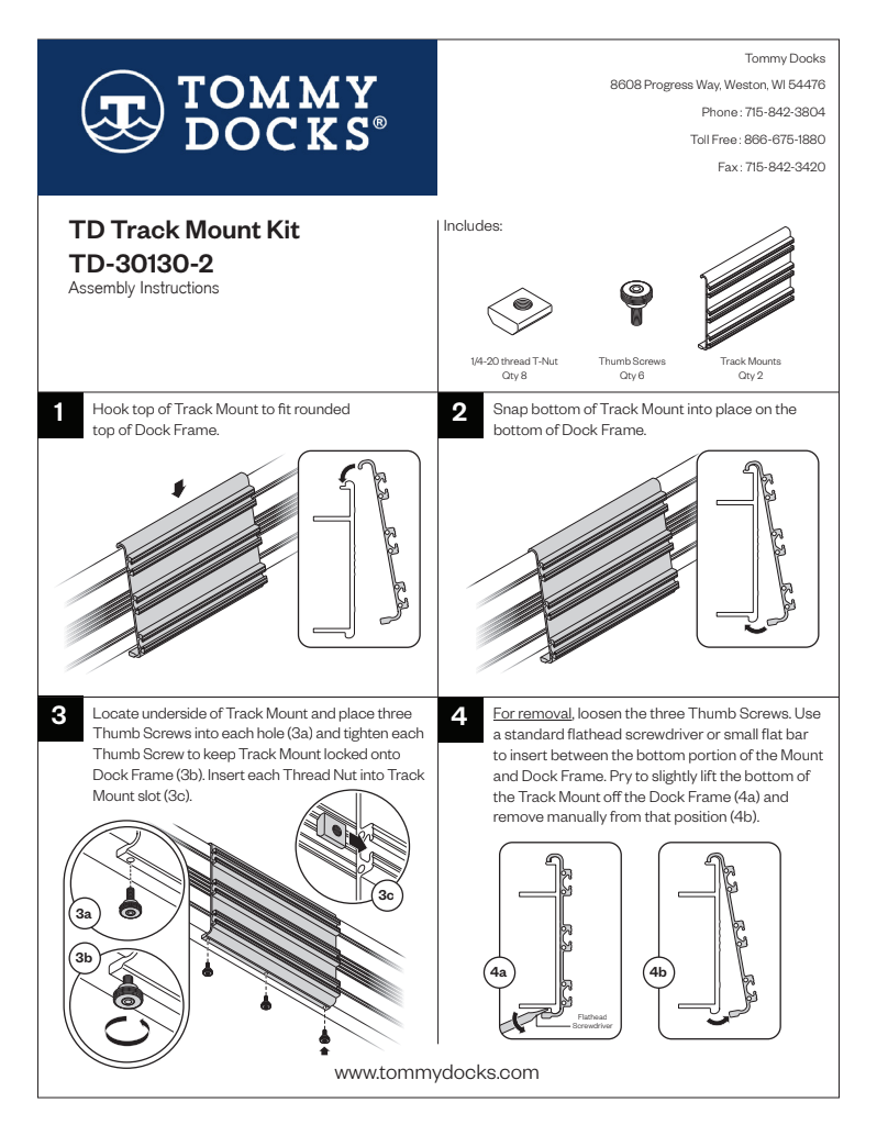 Download the latest version of the Track Mount Kit instructions. Have questions? Send us an email at info@tommydocks.com